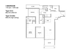 | タイプC | 3Bed | 106万円 (9,000SGD) | 106㎡ (1,141sqft) |
